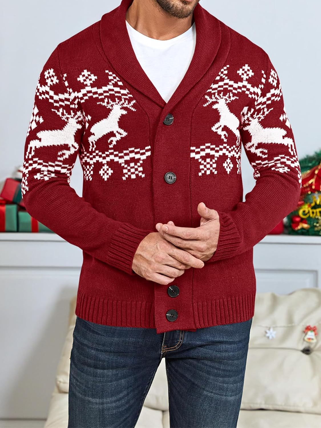 This garment features a traditional cable knit pattern while ensuring a contemporary and relaxed fit. With a chic shawl collar and extended sleeves, it’s an excellent choice for cooler weather. Made from premium, breathable materials, it delivers essential warmth and comfort while maintaining a fashionable profile. Layer this cardigan over a T-shirt or a dress shirt for a look that balances casual and polished.
