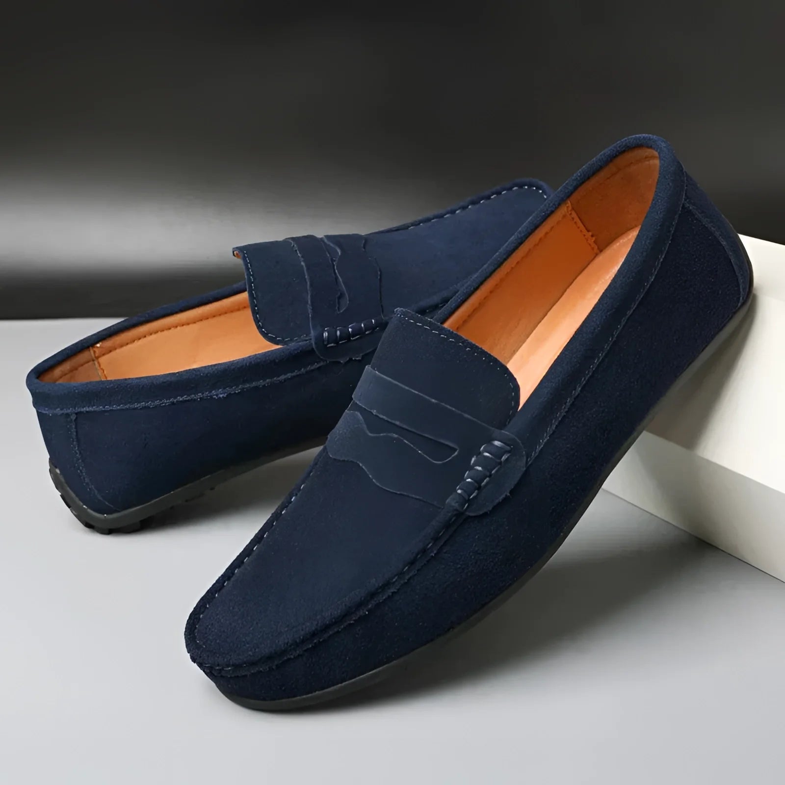 Vibrant Crimson Suede Loafers for Him - High-End Casual Footwear